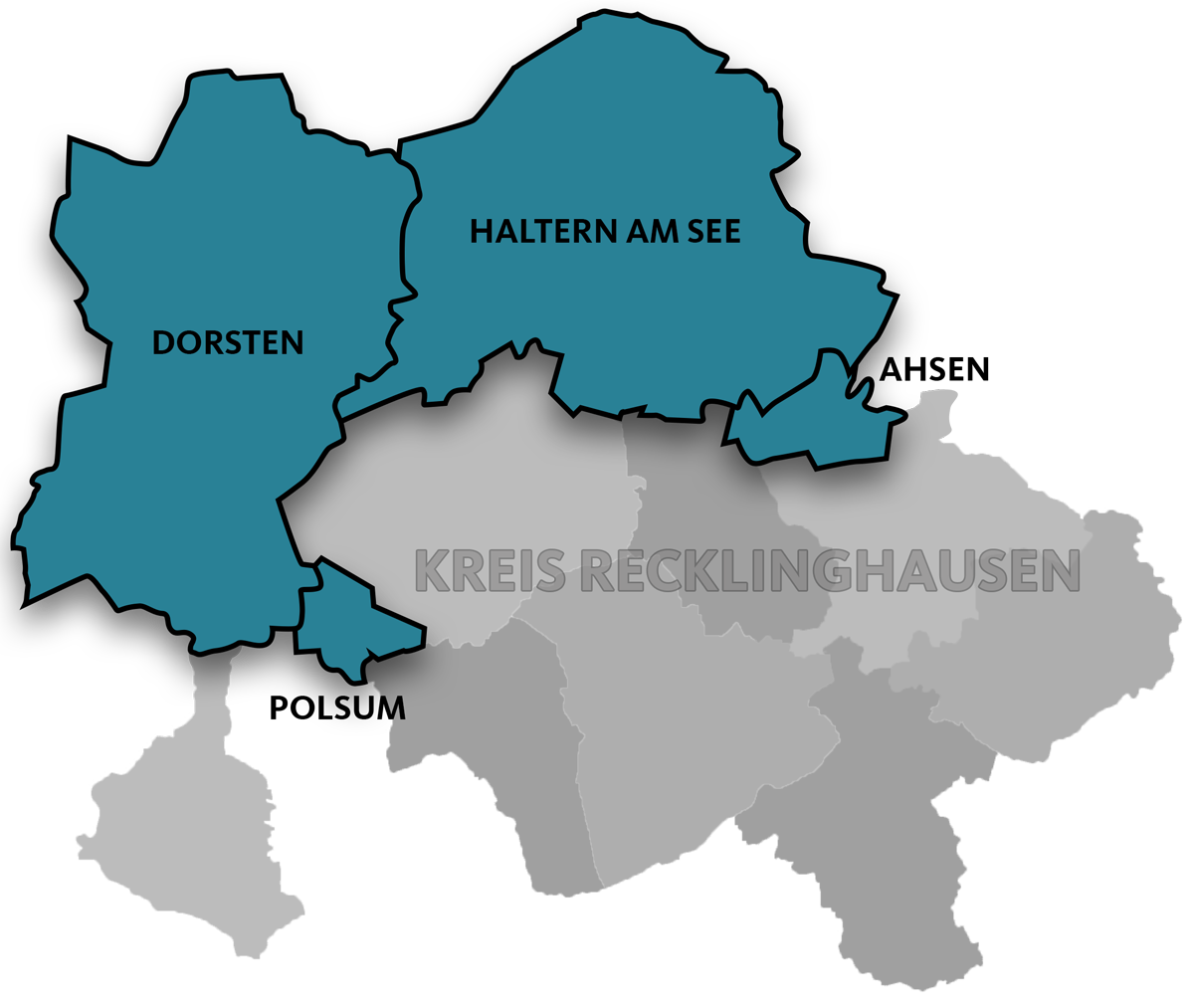 Dorsten ist die flächenmäßig größte der zehn Städte im Kreis Recklinghausen und zählt über 74.000 Einwohner, die in elf Stadtteilen leben.